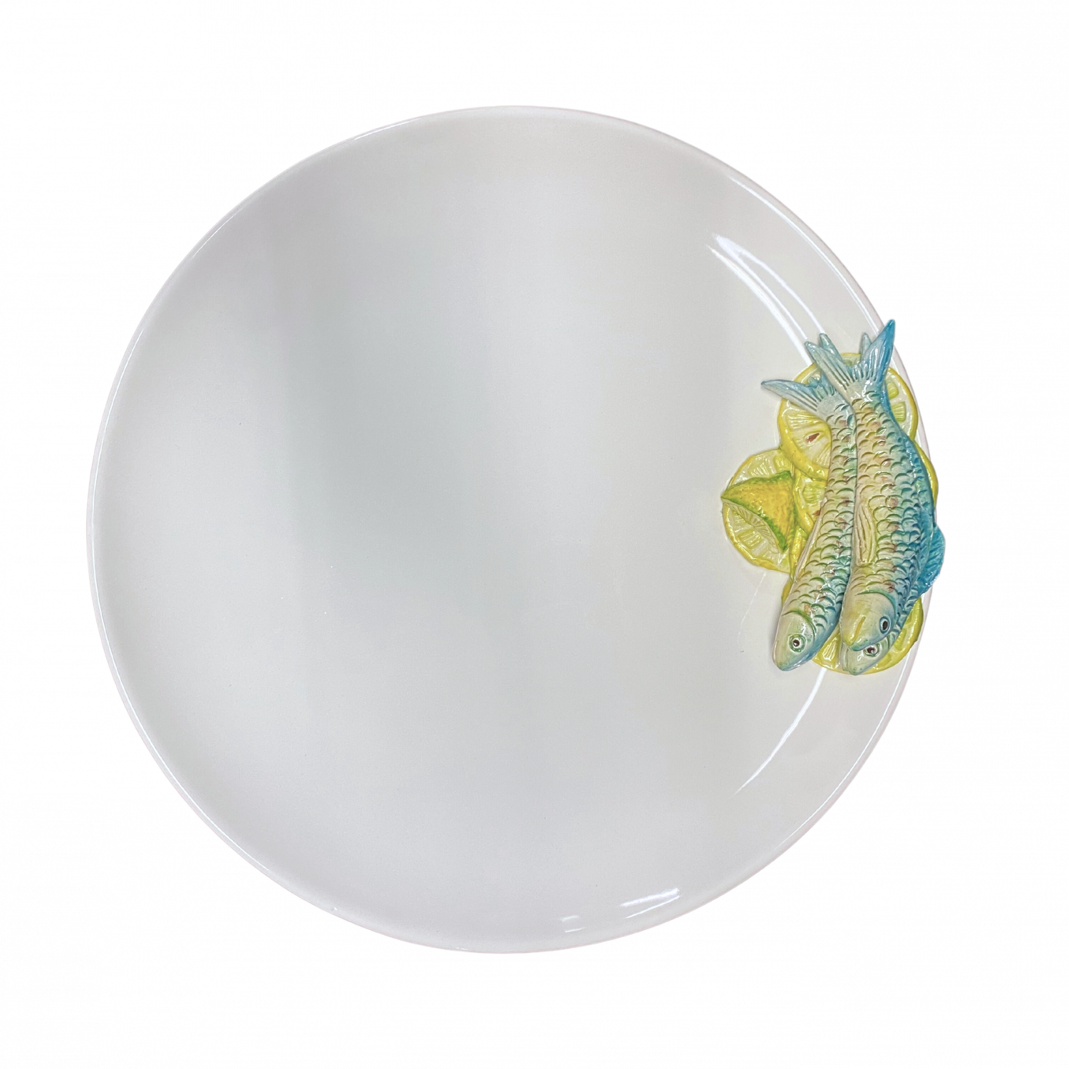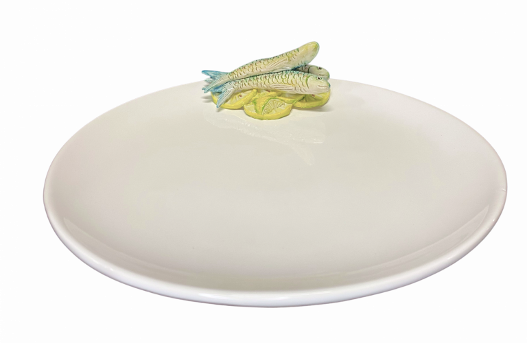Het Bord met Sardientjes XL is een stijlvol en zomers bord met handbeschilderde details van sardientjes aan de rand. De subtiele kleuren en het lichte ontwerp brengen een mediterrane sfeer naar tafel.