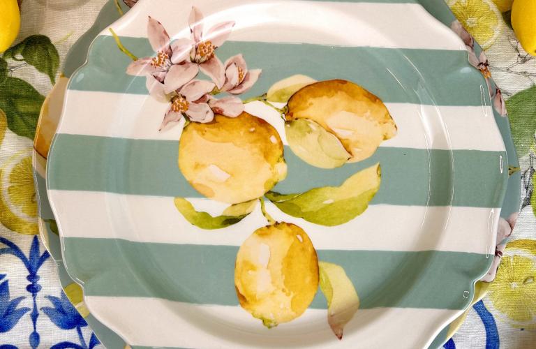 Klassiek Italiaans met een moderne twist. De frisse blauw-gele accenten geven elk gerecht een zonnig podium. Subtiel geprofileerde rand, licht golvend voor een ambachtelijke uitstraling.