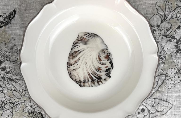 Breng de serene elegantie van de zee naar je tafel met de Collezione Esclusiva Mare van Piccobella – een verfijnde, handgemaakte servieslijn uit Italië. Elk item is uniek, zorgvuldig gevormd en gedecoreerd met natuurlijke maritieme patronen, geïnspireerd op schelpen, zand en zee.