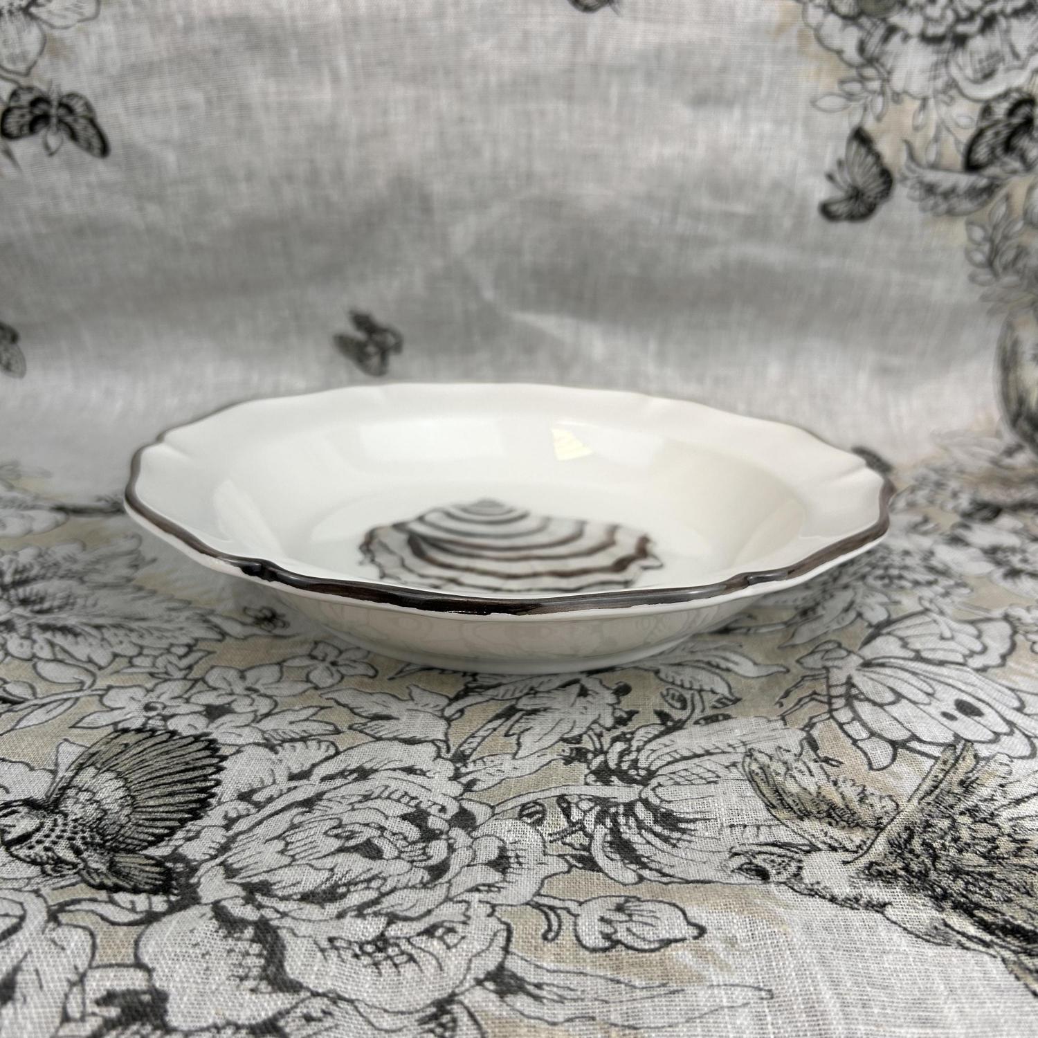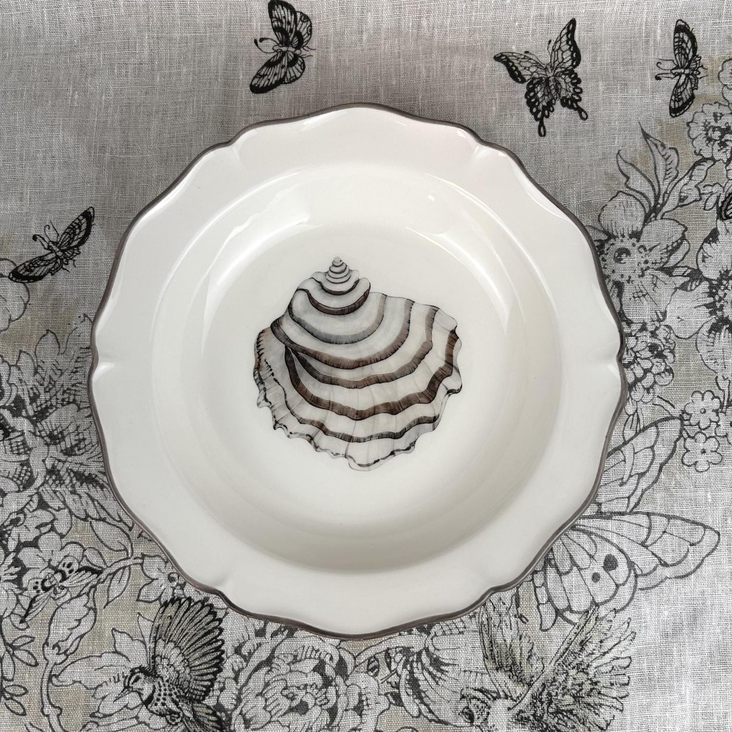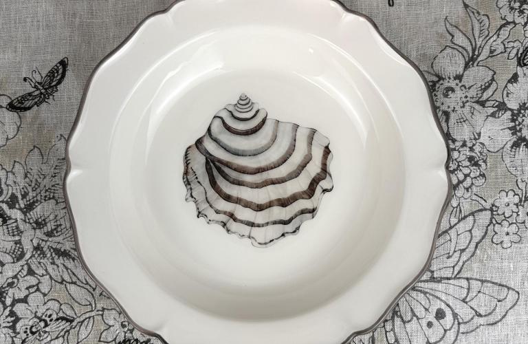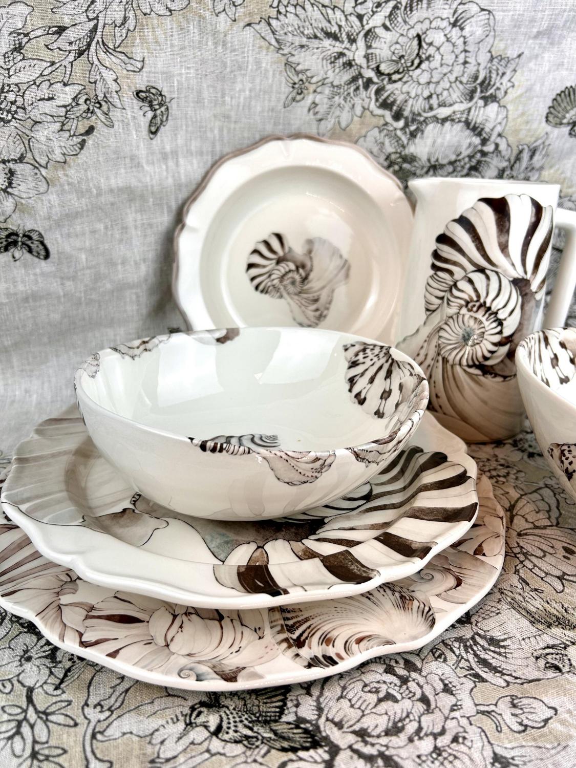 Breng de serene elegantie van de zee naar je tafel met de Collezione Esclusiva Mare van Piccobella – een verfijnde, handgemaakte servieslijn uit Italië. Elk item is uniek, zorgvuldig gevormd en gedecoreerd met natuurlijke maritieme patronen, geïnspireerd op schelpen, zand en zee.