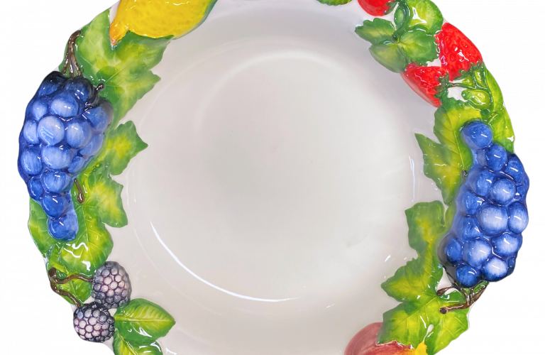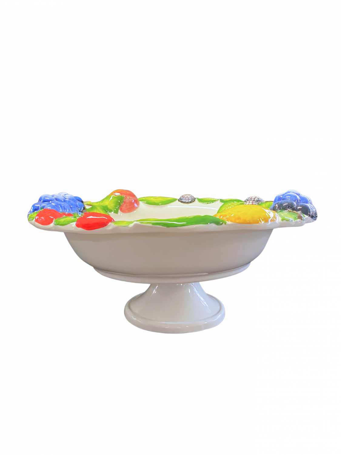 Deze Fruitschaal op Voet is een echte blikvanger op tafel! Versierd met kleurrijke, handbeschilderde vruchten straalt hij pure Italiaanse gezelligheid uit. Perfect om vers fruit, gebak of andere lekkernijen in te presenteren, maar ook prachtig als decoratief pronkstuk in de keuken of op een gedekte tafel.