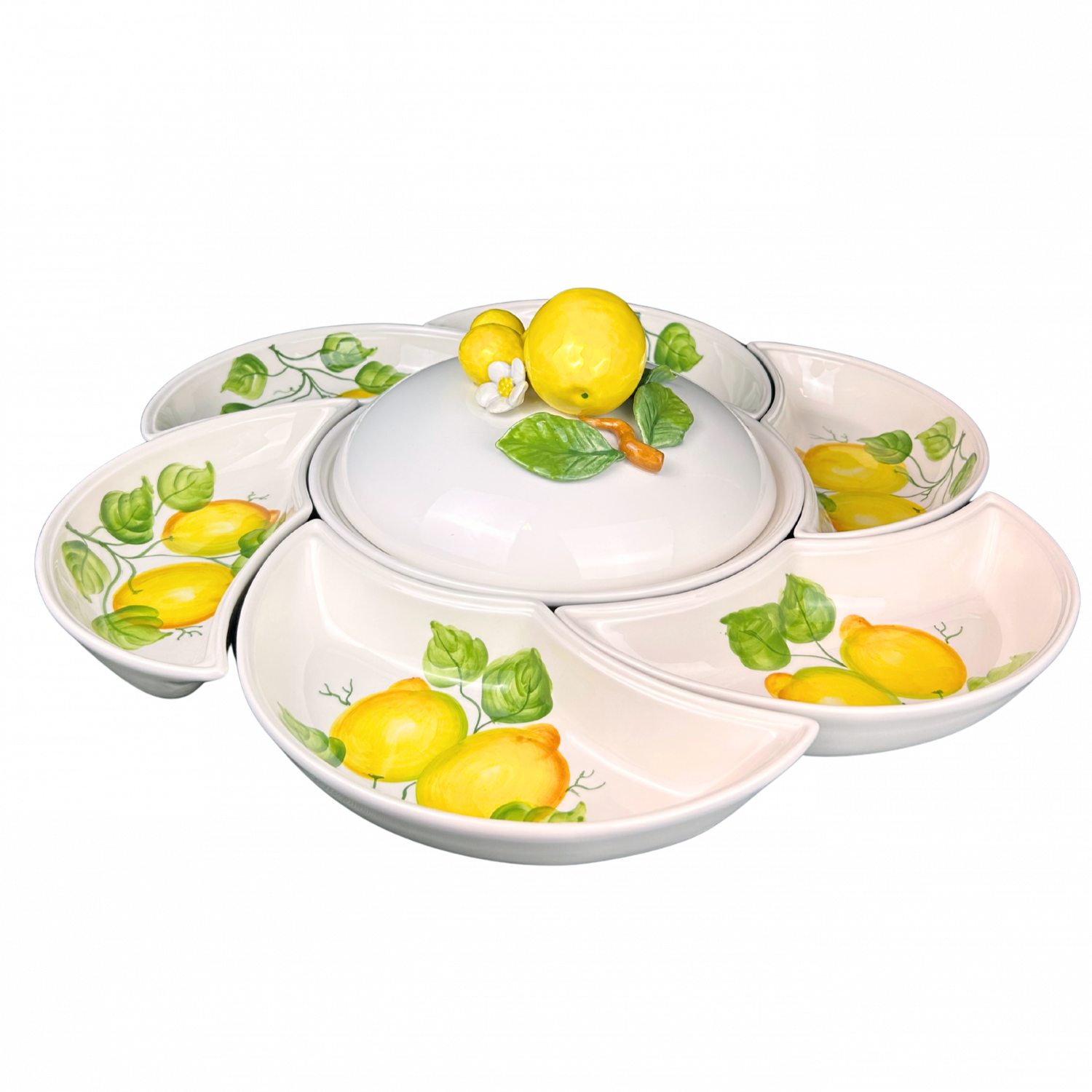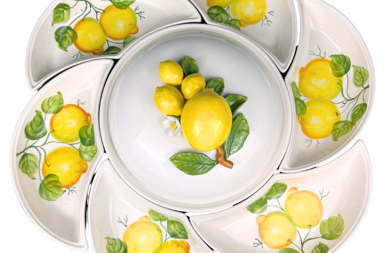 Limited Edition – XL Antipasti Schaal met 7 Compartimenten & 30 cm Lemon Dekselkom (60 cm)