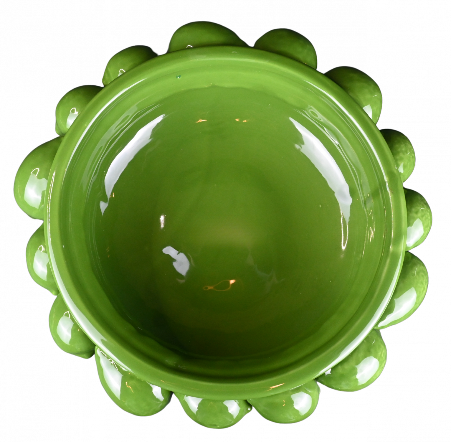 Breng frisse elegantie naar tafel met de Limoen fruitschaal/wijnkoeler op voet van Piccobella. De schaal is uitgevoerd in een levendige limoengroene kleur en afgewerkt met speelse ronde details rondom. Perfect om als stijlvolle fruitschaal te gebruiken of om wijn koel te serveren tijdens feestelijke gelegenheden.
