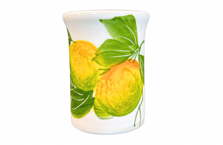 Geniet in stijl van een Italiaans likeurtje met het Limoncello Glaasje van Piccobella Italiaans servies. Dit handbeschilderde glaasje is versierd met frisse citroenen en levendige groene bladeren, helemaal in de sfeer van de Amalfikust.