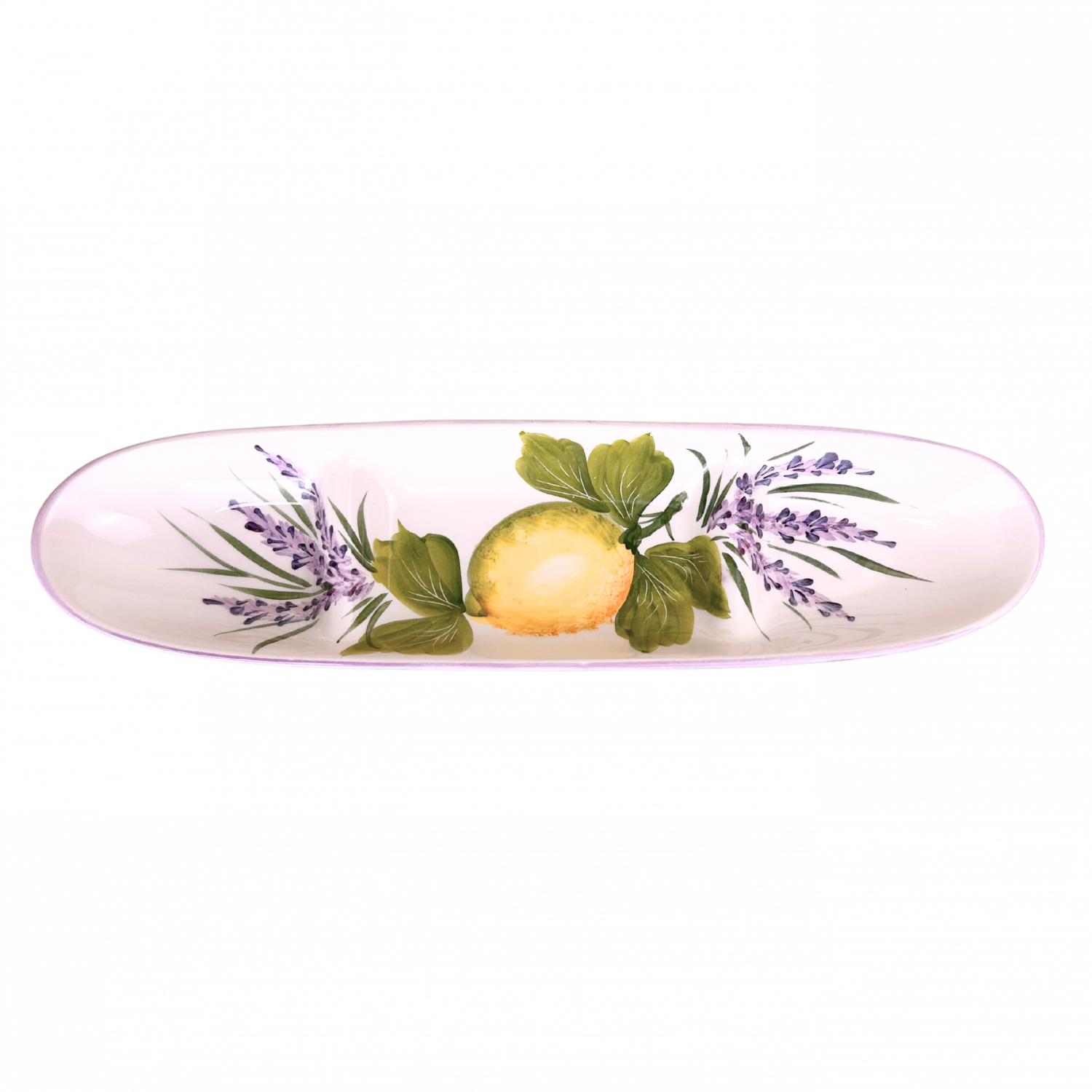 De Giada Limone & Lavanda serie brengt de geur, kleur en sfeer van Zuid-Italië rechtstreeks naar je tafel. Handgemaakt en met liefde beschilderd door Italiaanse artisans. De combinatie van frisse citroenen, zachte lavendel en een elegante lila buitenzijde maakt deze collectie uniek, chic en perfect voor elk seizoen.