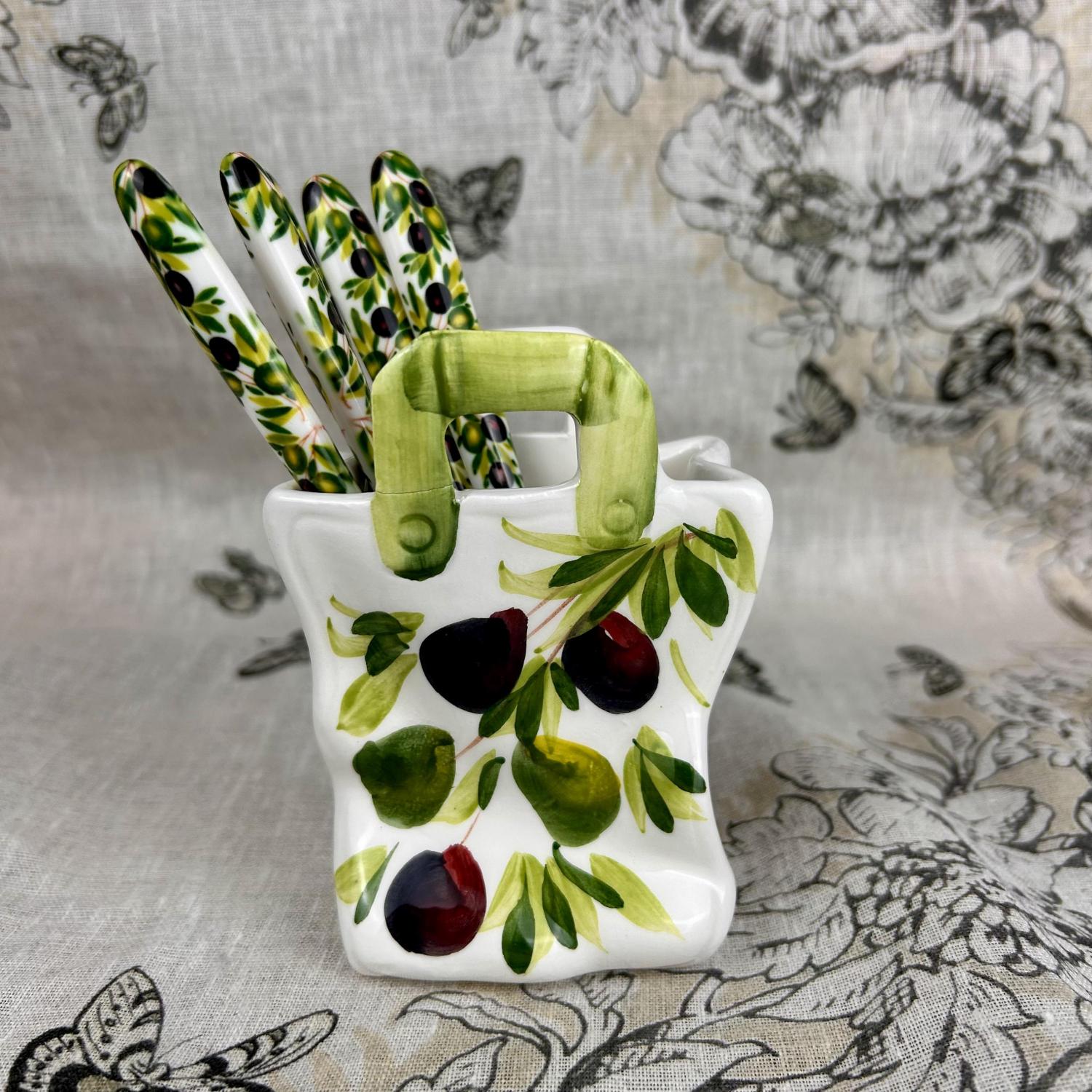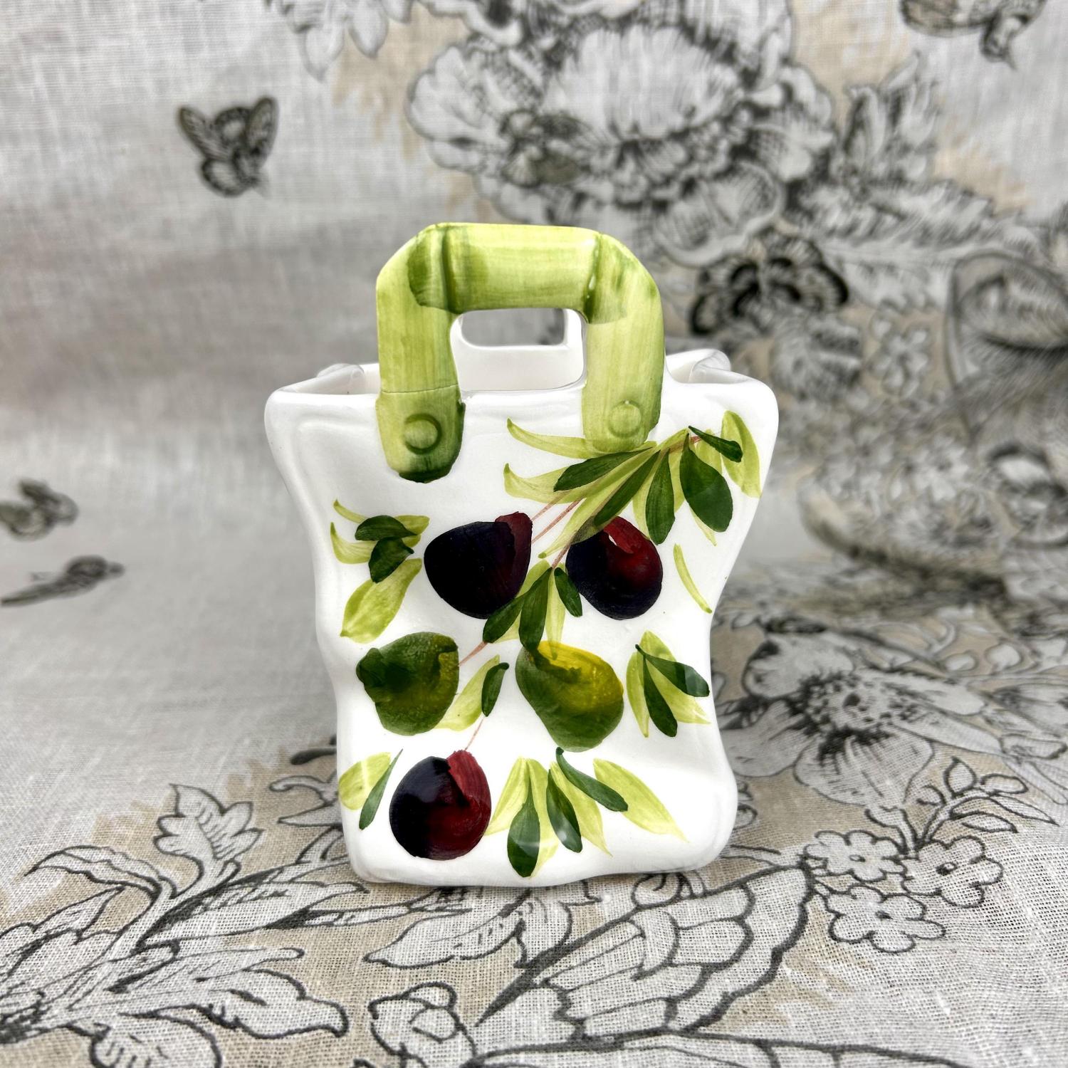 Breng een vleugje mediterrane charme in huis met deze unieke mini keramieken tasjes, met de hand beschilderd in drie sfeervolle thema’s: citroen, olijf en tomaat. Elk tasje straalt warmte en gezelligheid uit – perfect om cadeau te doen of je tafel net dat beetje extra te geven.