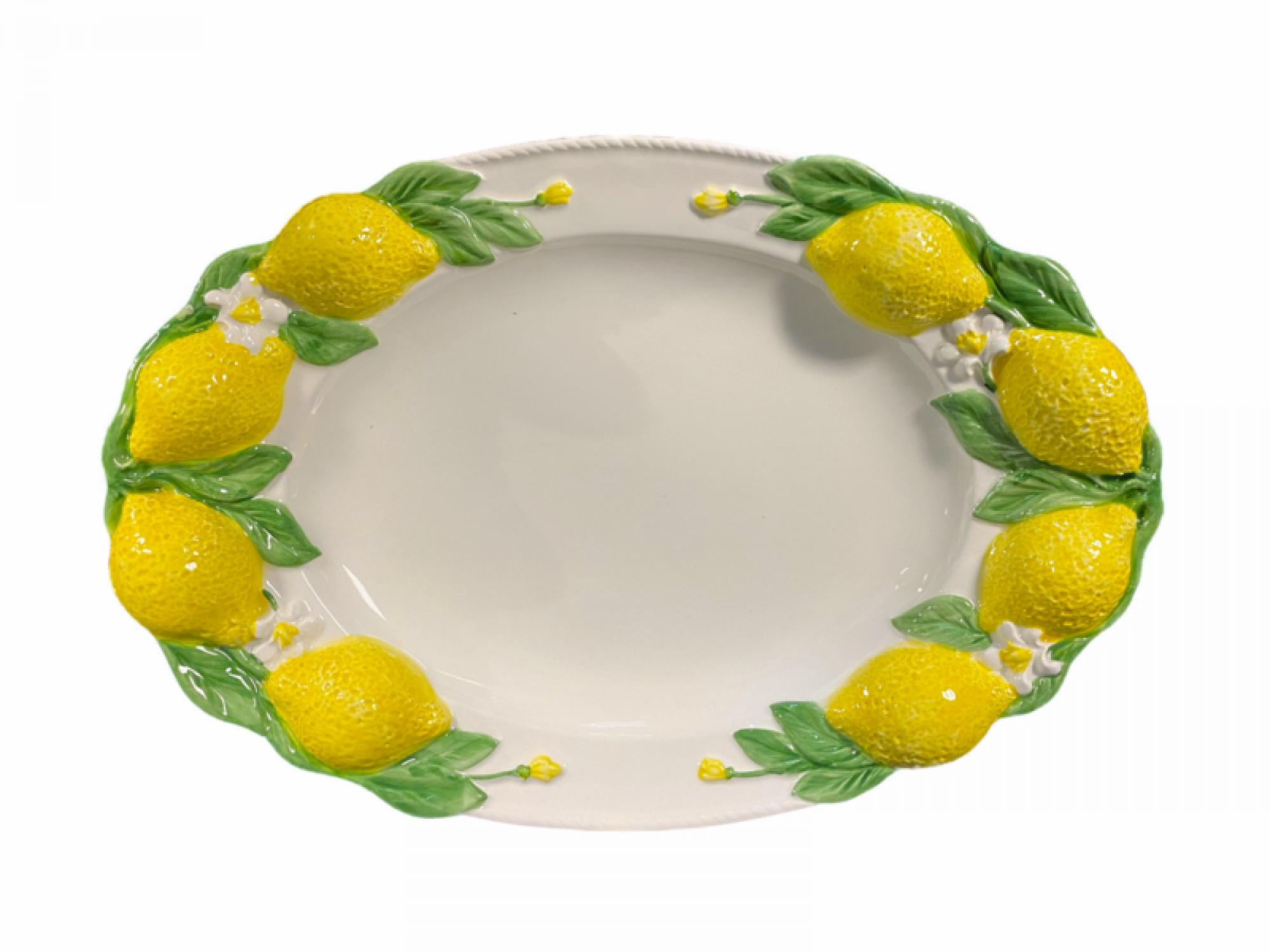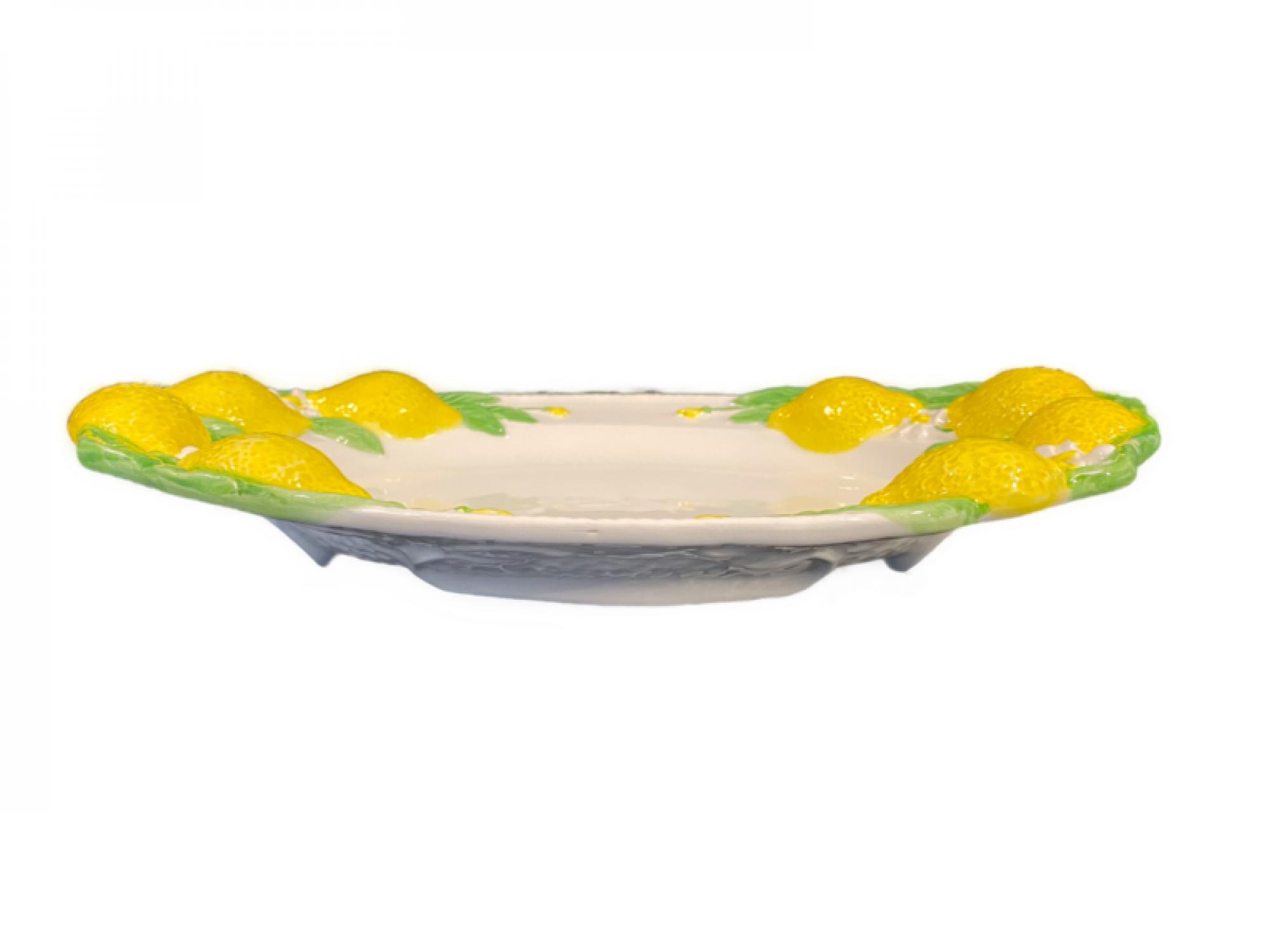 Napels Grote ovale platte schaal Citroen (Onderkant bladreliëf)