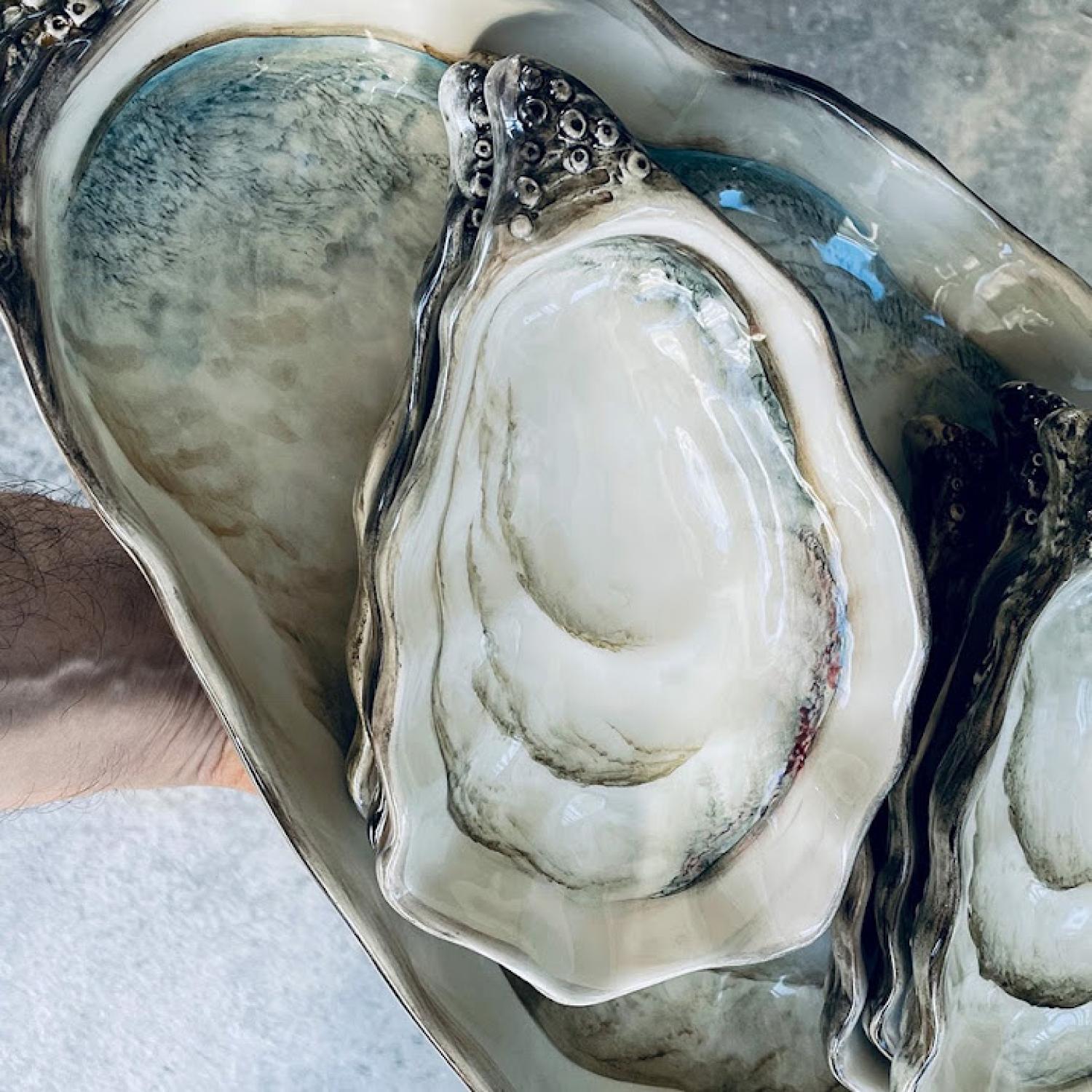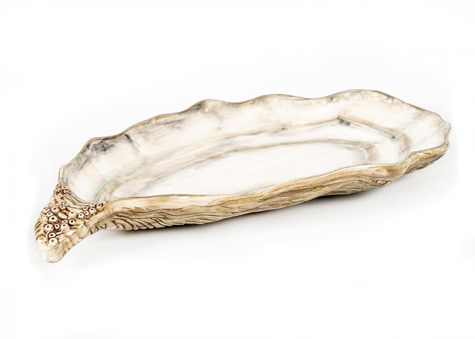 Een indrukwekkende grote oesterschaal uit de Ostrica Collectie, met de hand gevormd en beschilderd in Italië. De realistische schelpvorm en subtiele natuurlijke tinten geven dit stuk een luxueuze en tijdloze uitstraling.