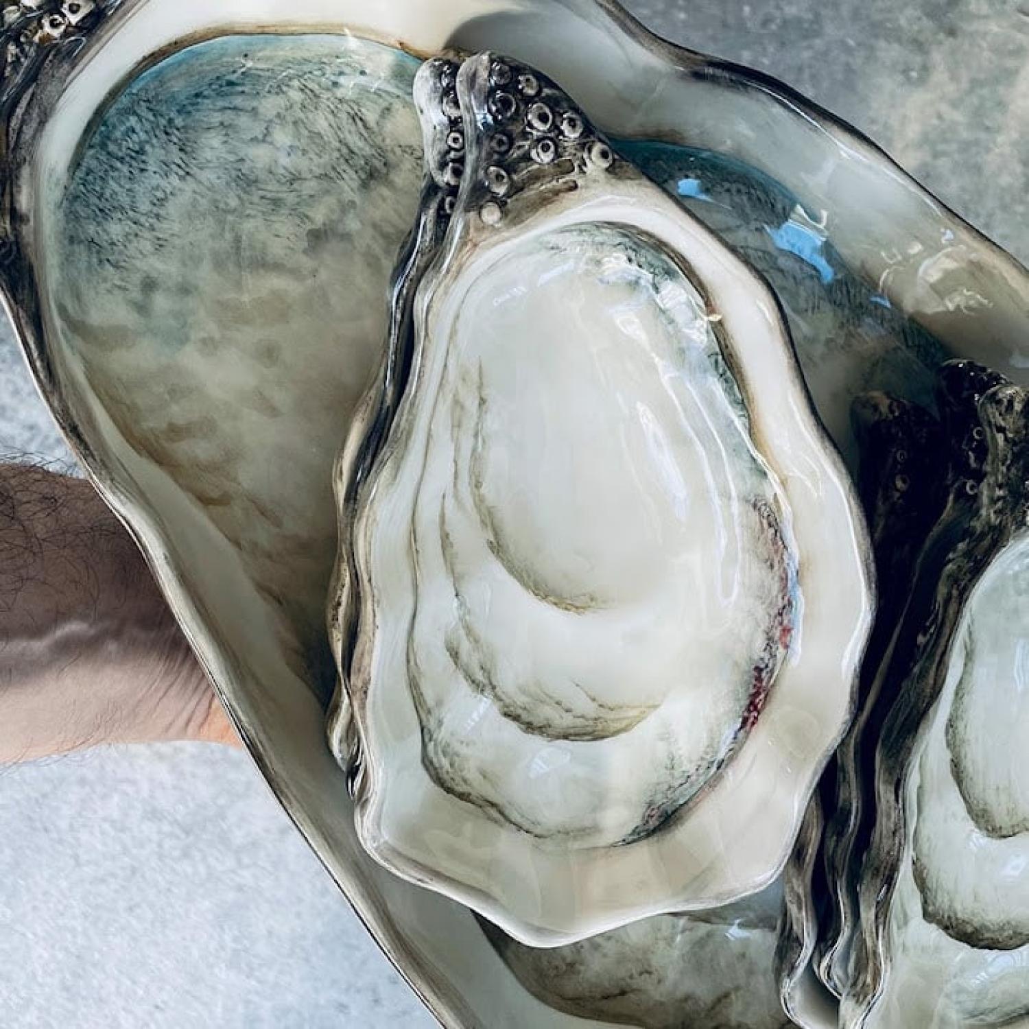 Een elegante oesterschaal uit de Ostrica Collectie, met de hand gevormd en beschilderd in Italië. De natuurlijke tinten en realistische schelpvorm geven deze schaal een verfijnde, maritieme uitstraling.