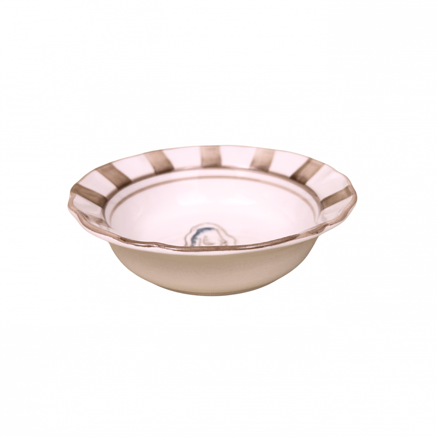 De golvende rand en handgeschilderde strepen maken deze schaal bijzonder stijlvol.