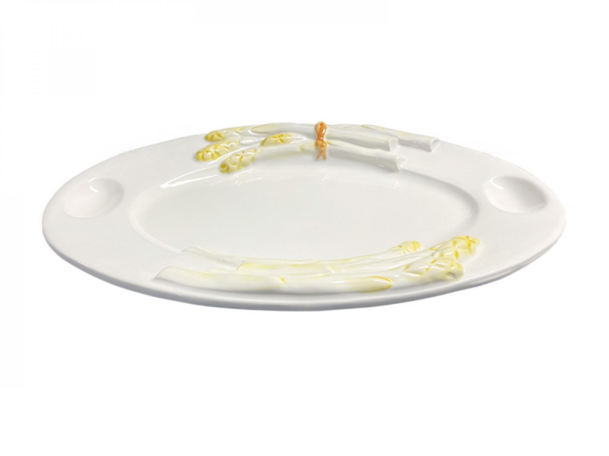 Ovale schaal asperges met ruimte voor 2 eieren, klein 36cm x 26cm