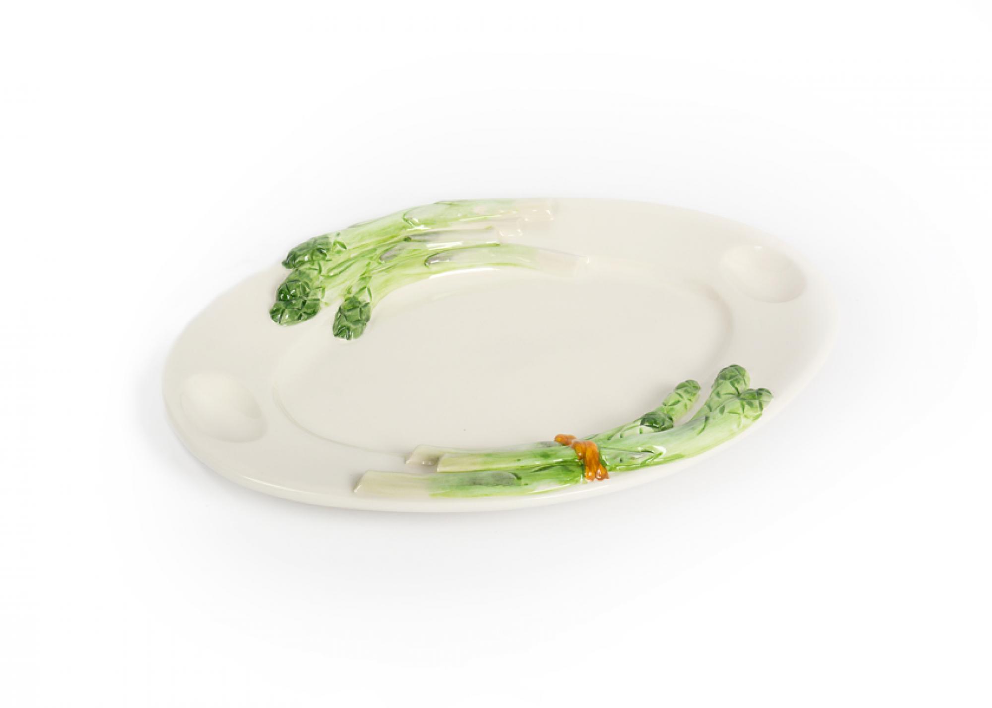 Ovale schaal Asperges met 2 eigaten Groen