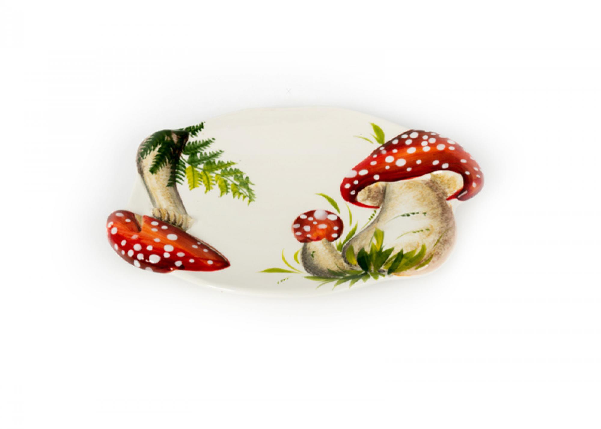 Een sfeervolle ovale schaal uit de Funghi Collectie, met de hand gemaakt en beschilderd in Italië. Versierd met charmante rode paddenstoelen en frisgroene details — een echte blikvanger op de herfsttafel of in een landelijke keuken.