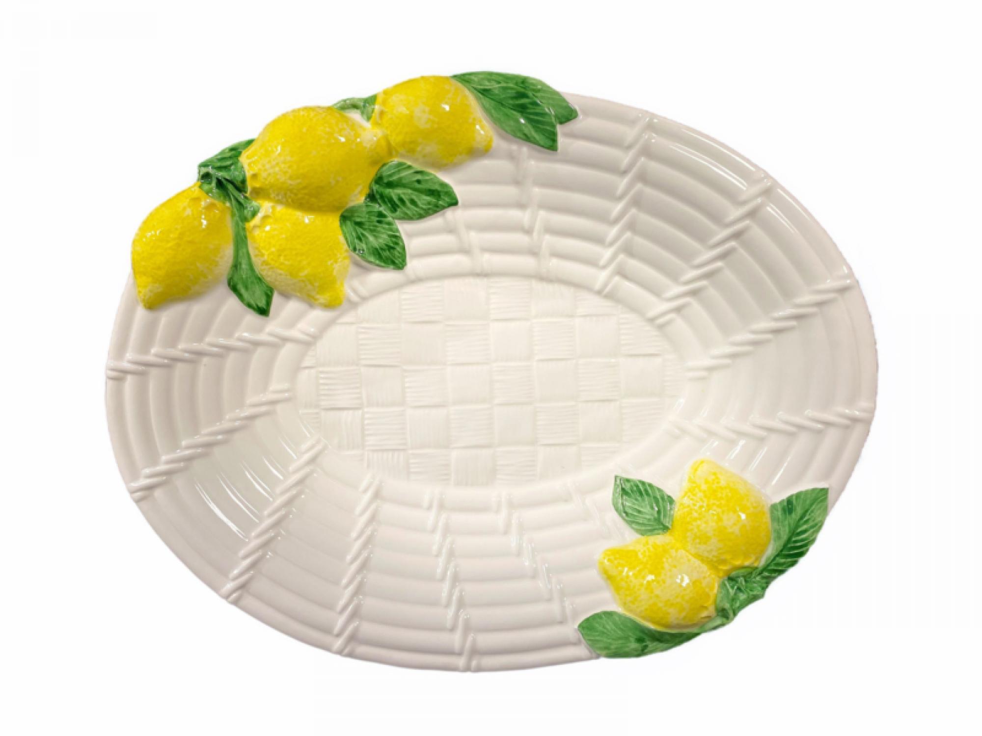 Een prachtige ovale mand-schaal uit de Palermo Collectie, met de hand gemaakt en beschilderd in Italië. De levendige citroenen met frisgroene bladeren brengen direct de warme, mediterrane sfeer van Sicilië op tafel.
