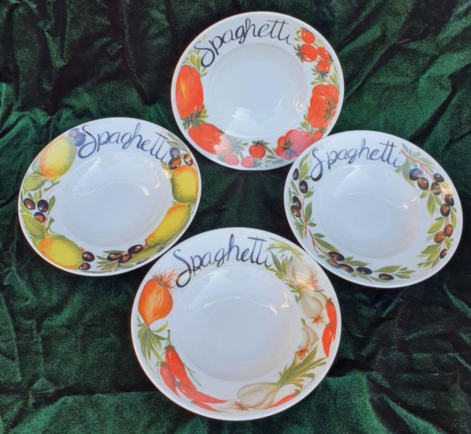 Ook verkrijgbaar in een maat groter 26cm en beschilderd met tomaten, olijven of met knoflook/peper