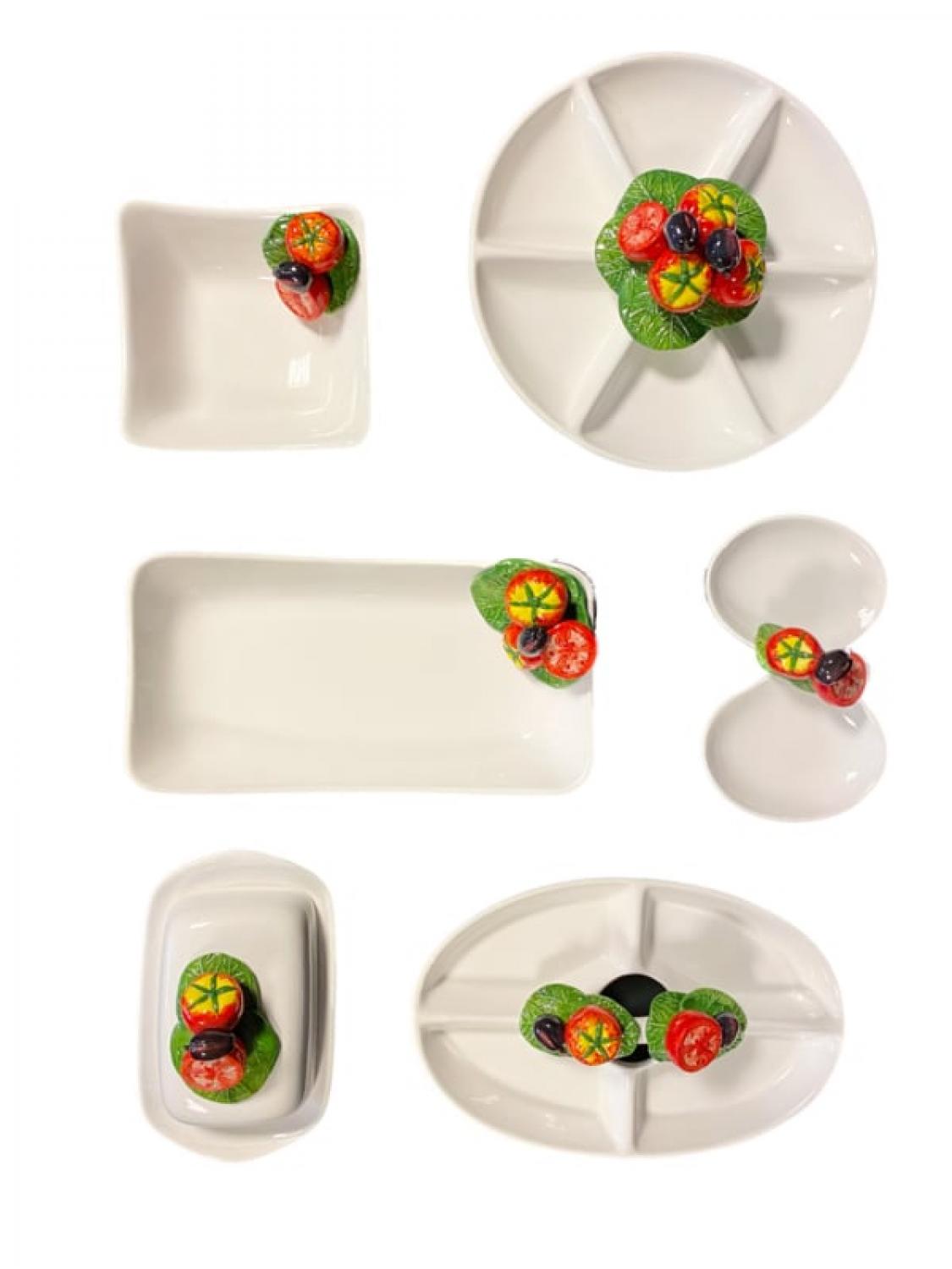 Een stijlvolle antipasti schaal uit de Pomodoro Collectie, met de hand gemaakt en beschilderd in Italië. Versierd met levendige tomaten en olijven, die samen zorgen voor een frisse en mediterrane uitstraling.