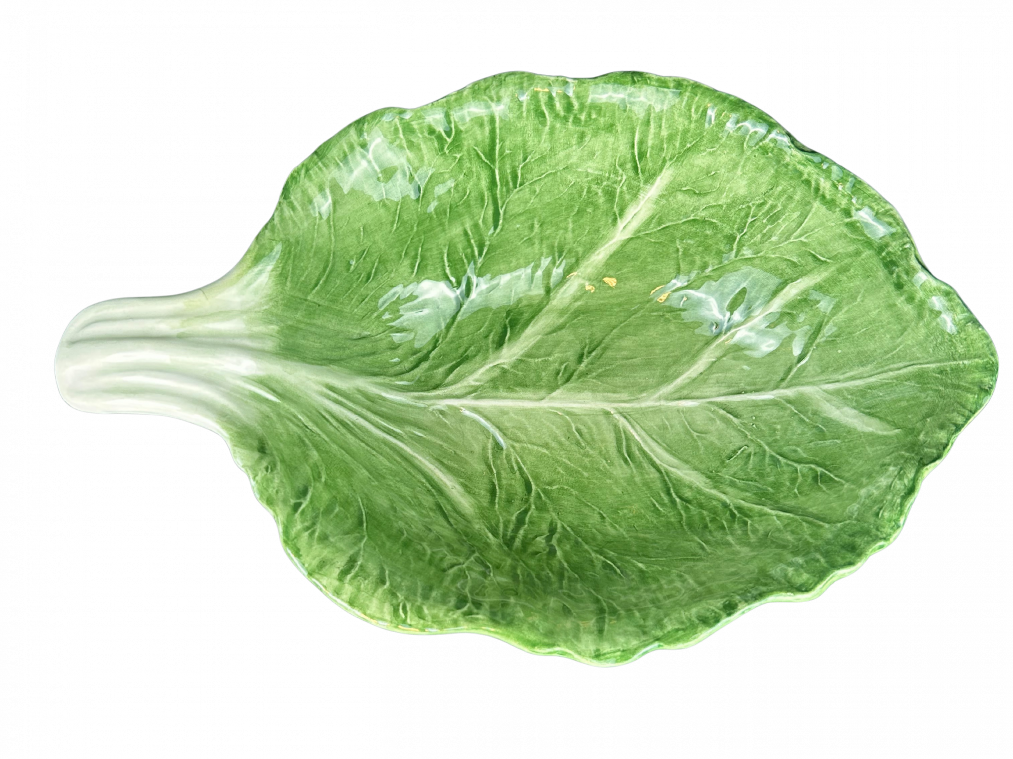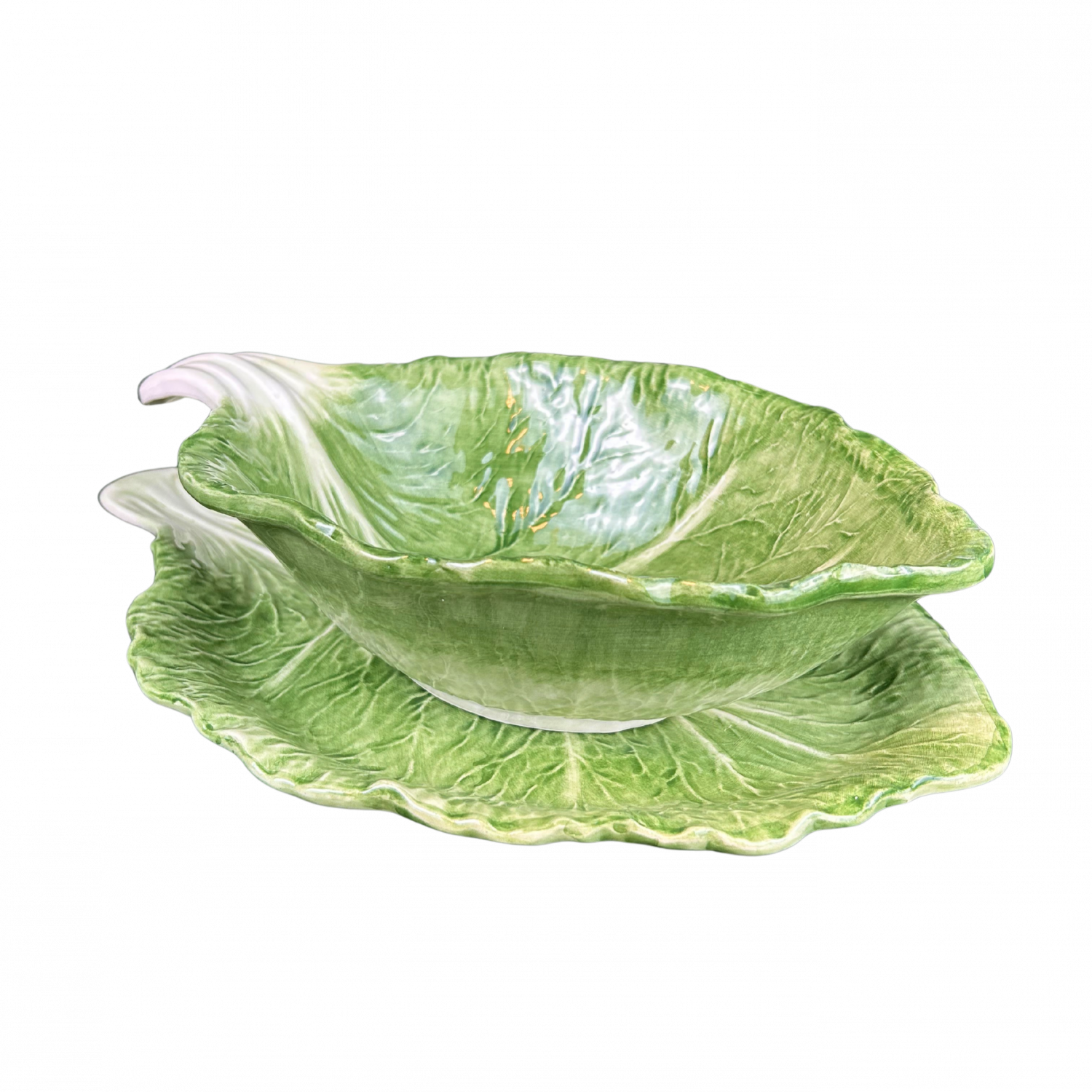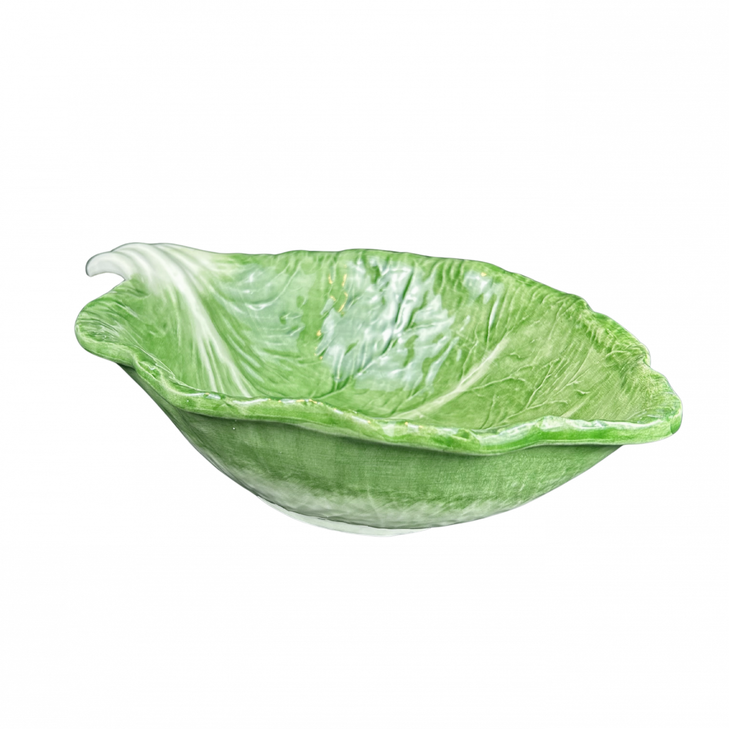Een royale, handgevormde serveerschaal met verfijnde koolbladstructuur. Perfect voor salades, pastagerechten of feestelijke bijgerechten.