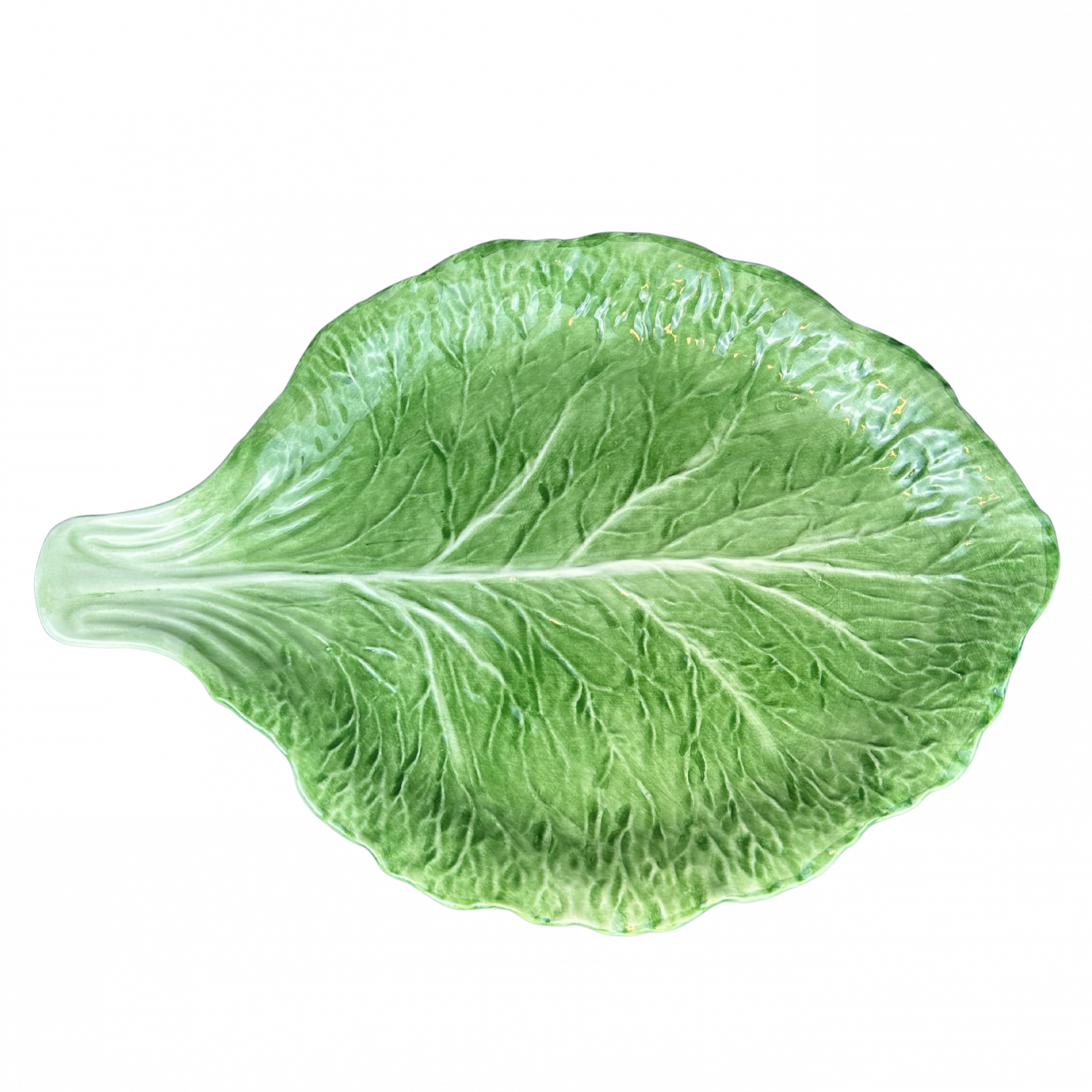 Een royale, handgevormde serveerschaal met verfijnde koolbladstructuur. Perfect voor salades, pastagerechten of feestelijke bijgerechten.