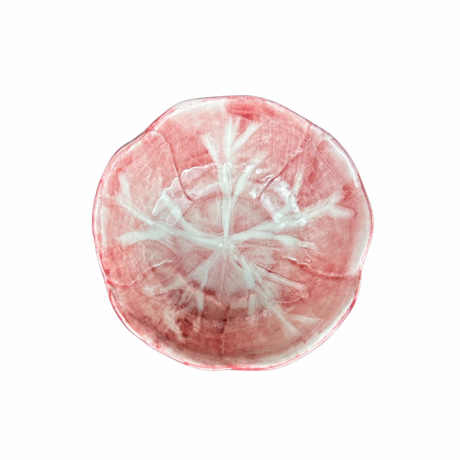 Ontdek de Roze Rome serie – handbeschilderd Italiaans servies met een verfijnde bladstructuur in warme roze tinten.