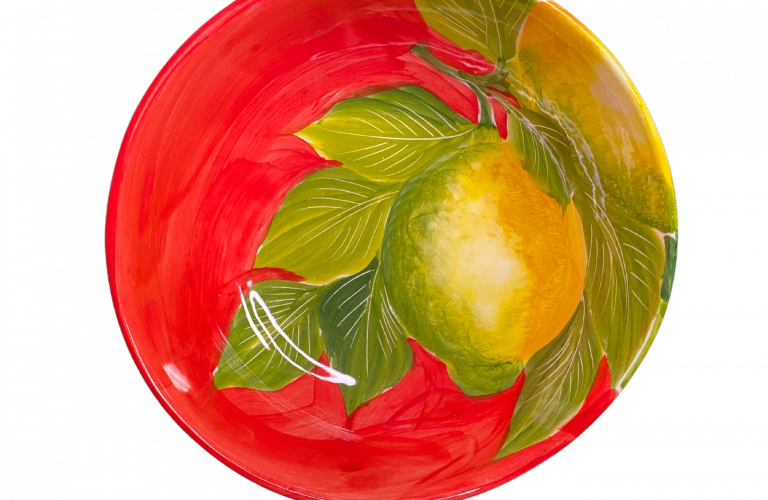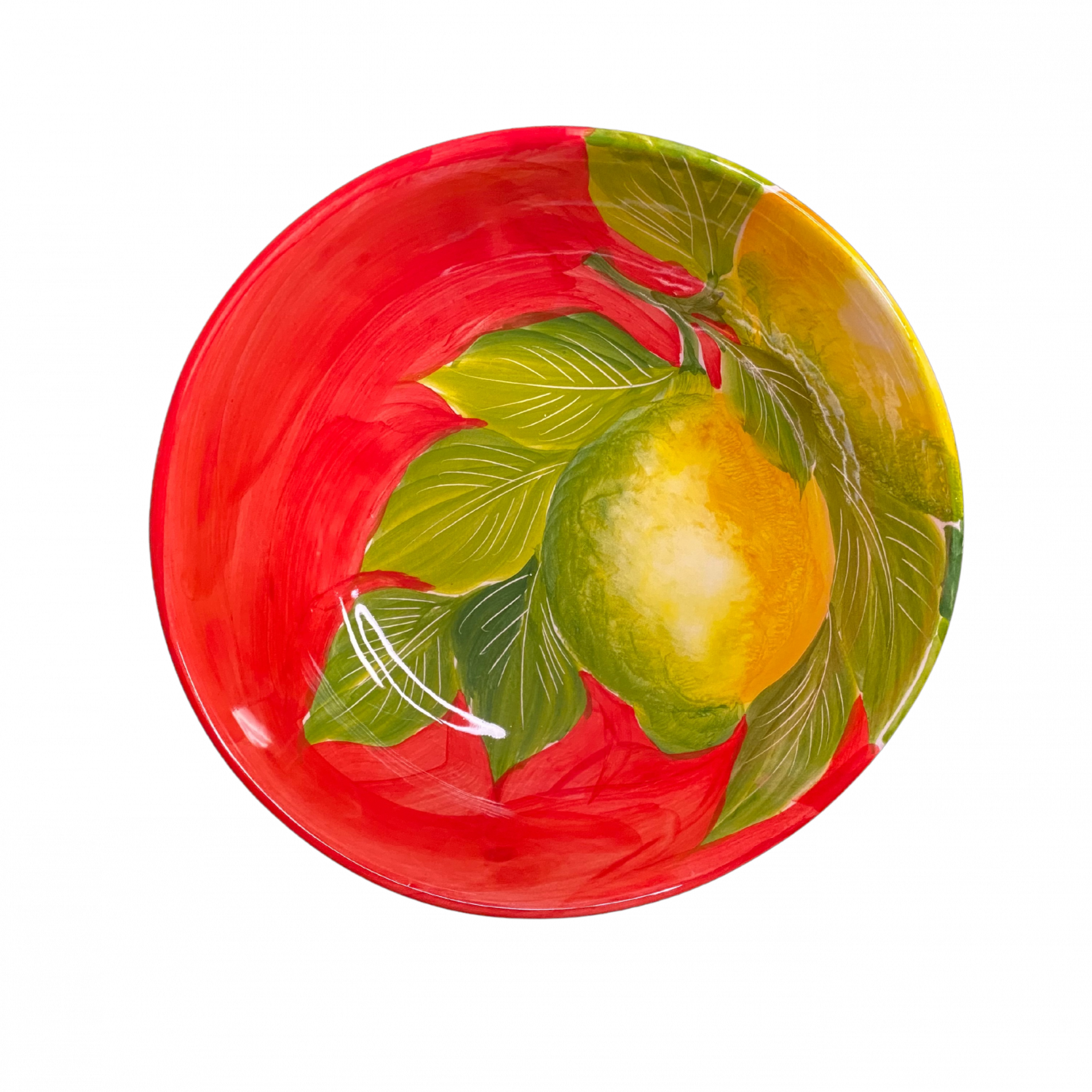 De Rosso Gadia Citroen M brengt een vrolijke Italiaanse sfeer naar tafel. De diepe rode kleur, het handbeschilderde citroendetail en de subtiele glans maken dit schaaltje tot een echte blikvanger.
