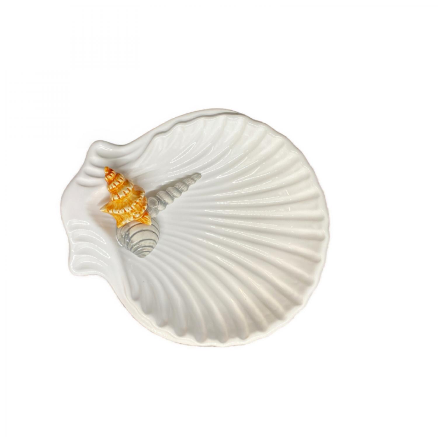Schelp met zeevruchten – wit (20x18 cm)