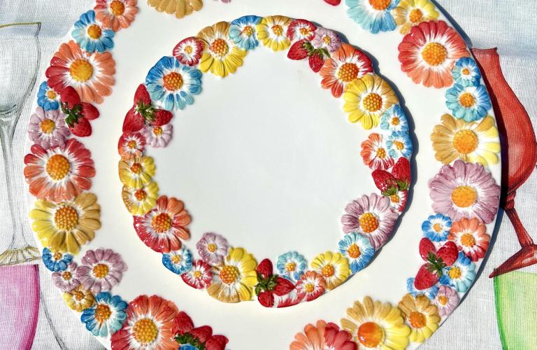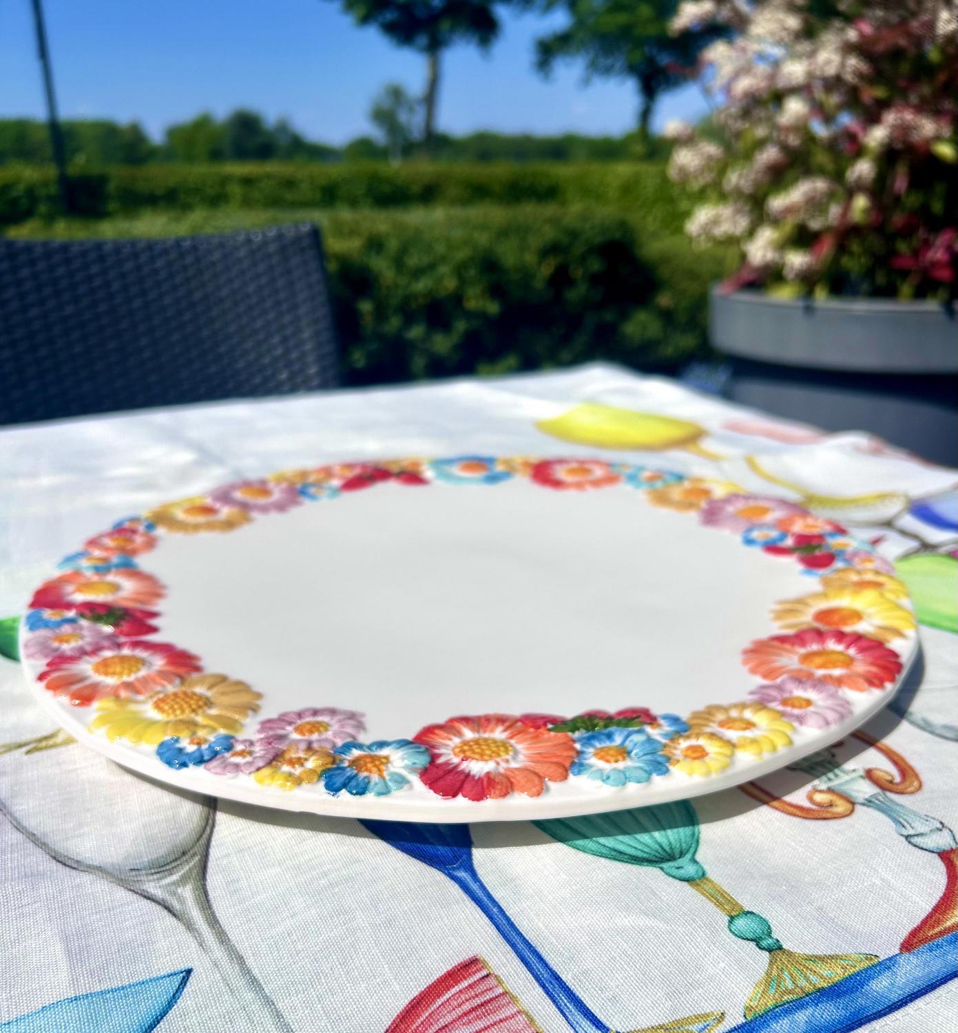 De taartschaal combineert prachtig met de Fiori Colorati gebaksbordjes (22 x 22 cm). Samen vormen ze een sfeervolle en speelse set die elke gelegenheid extra bijzonder maakt.