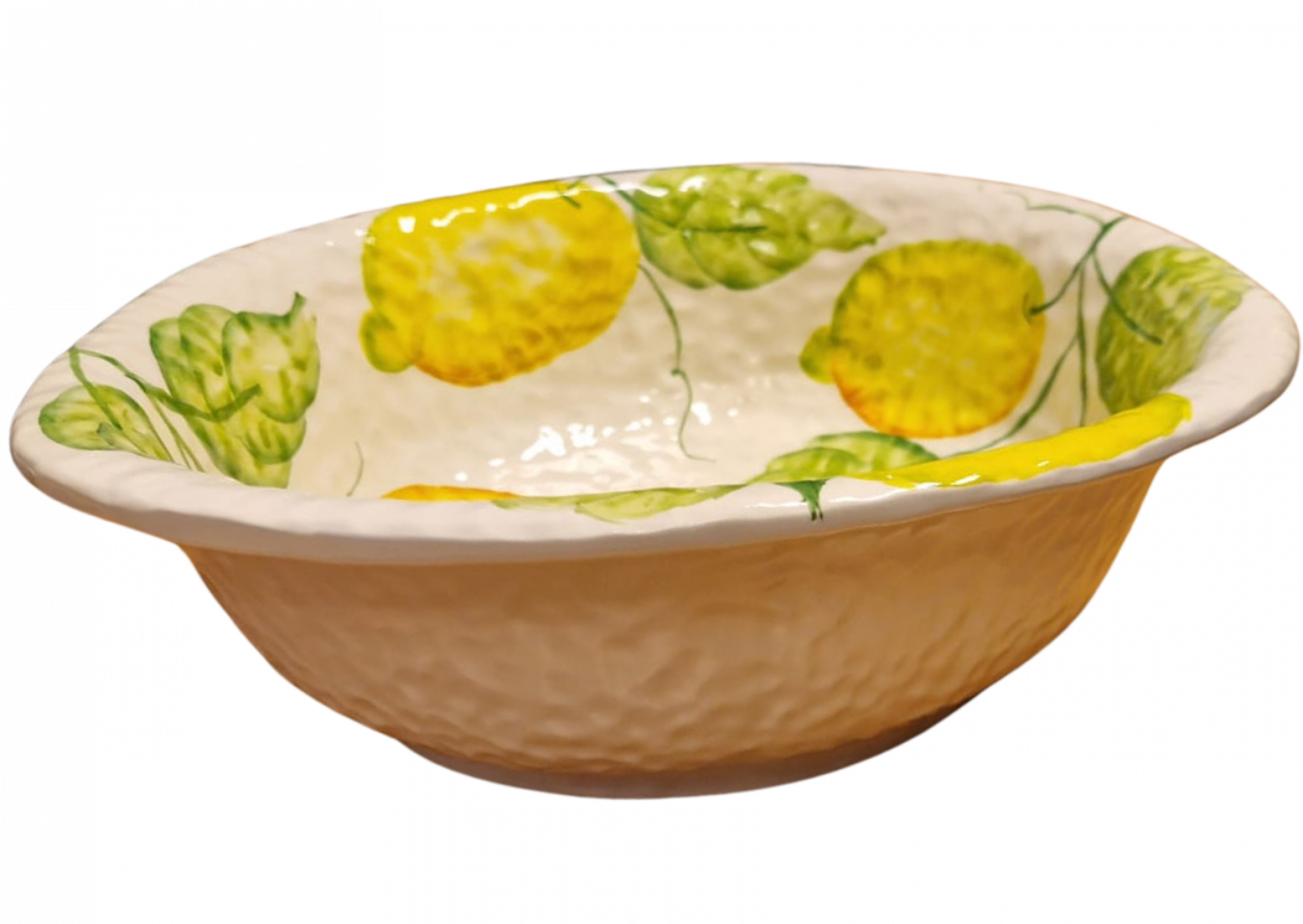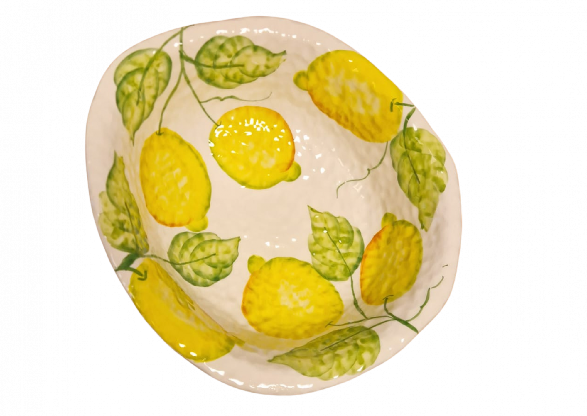 Breng de frisse charme van Italië naar tafel met de Turijn Kom XL Diep Citroen uit de citroencollectie van Piccobella Italiaans servies. Deze handbeschilderde schaal is gedecoreerd met levendige citroenen en groene bladeren, waardoor je direct de zonnige sfeer van de Amalfikust in huis haalt.