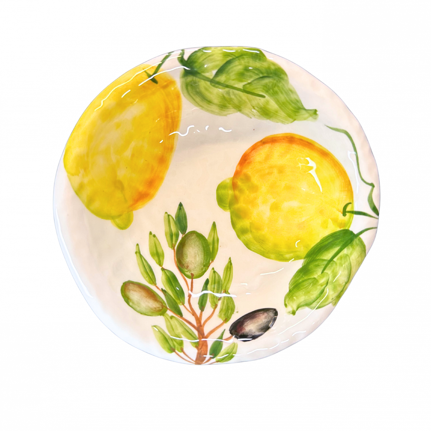 Handbeschilderd keramiek met citroen- en olijvendecor in reliëf