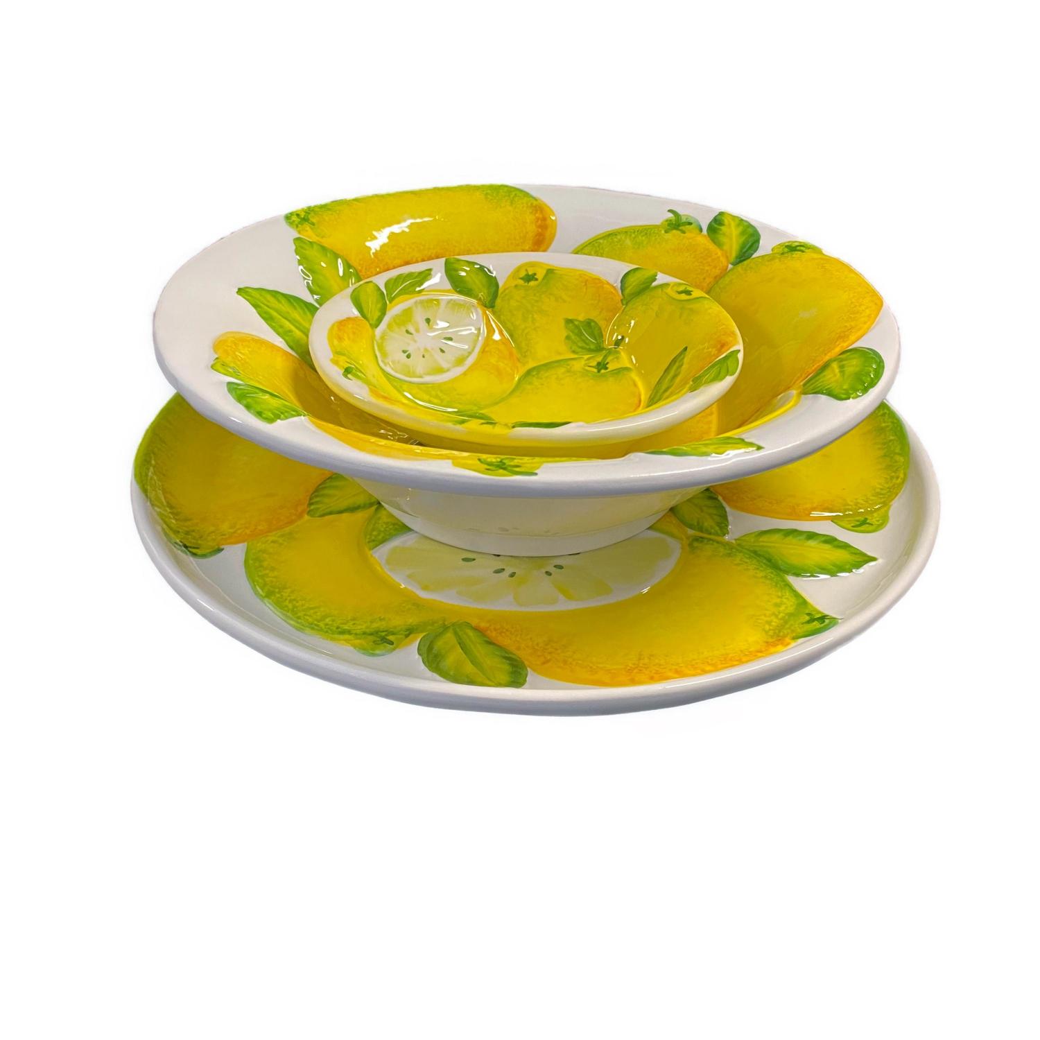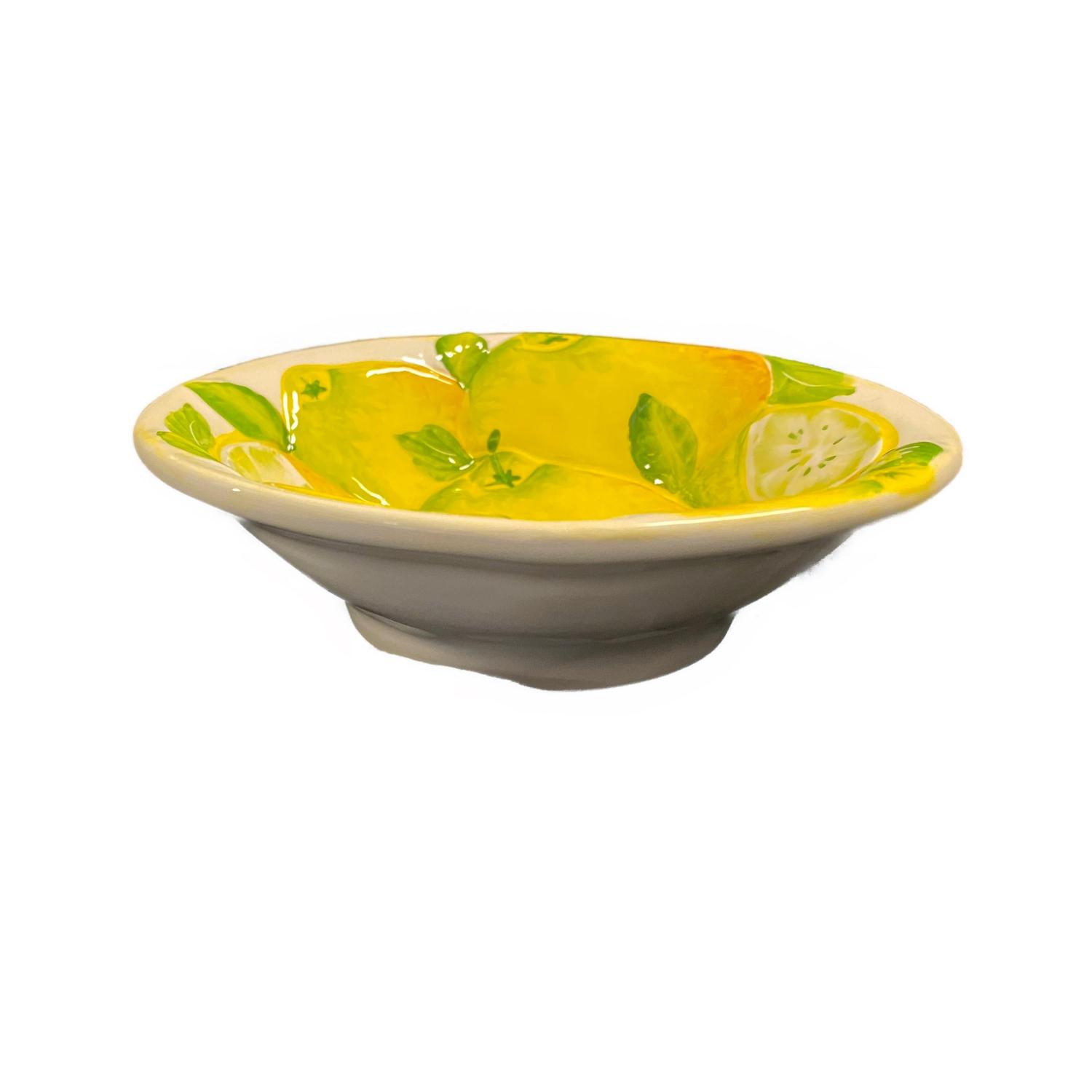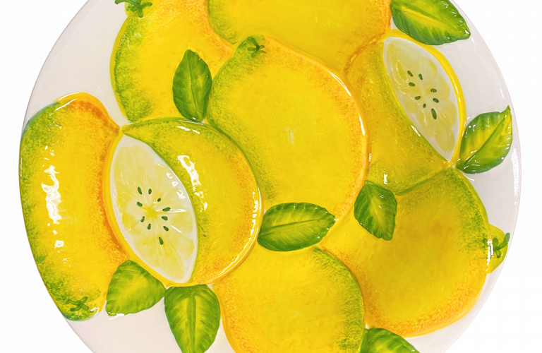 De Verona Citroen Kom met Reliëf straalt één en al vrolijkheid uit! De handbeschilderde citroenen en subtiele reliëfstructuur geven deze kom een frisse, zomerse uitstraling. Perfect om salades, pasta of fruit in te serveren, maar ook prachtig als decoratief stuk op tafel.
