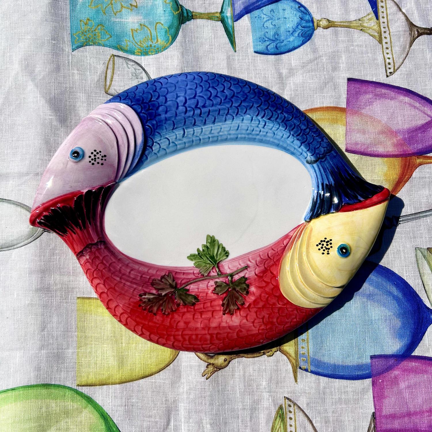 Breng de mediterrane sfeer naar uw tafel met deze handbeschilderde vis schalen uit de Piccobella collectie. Het kleurrijke en speelse ontwerp in de vorm van vissen maakt elk gerecht een feestje om te serveren.
